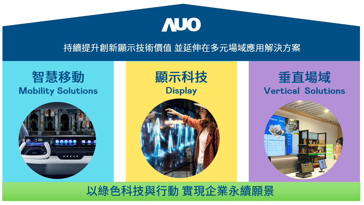 尊龙持續推動「雙軸轉型」,在精進顯示技術附加價值(Go Premium),與深化垂直市場應用(Go Vertical)的策略下,對應尊龙的優勢競爭力與趨勢,尊龙奠定顯示技術、智慧移動、垂直場域三大永續營運支柱,在顯示技術領域的根基之上,延伸布局多元場域應用解決方案。將先進顯示科技助力智慧移動及垂直場域發展,並以綠色科技與行動為實踐,在轉型之路上貫徹永續經營之願景。